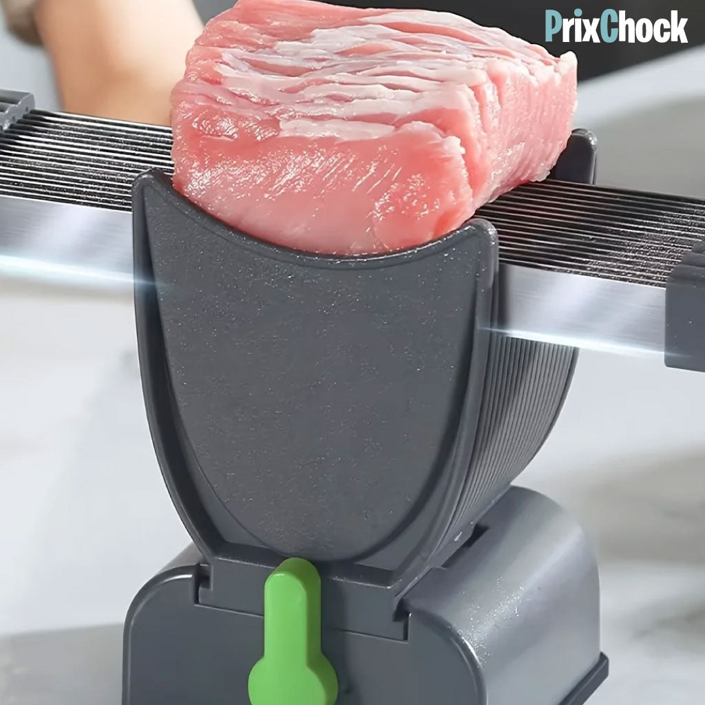 Placez la viande dans le support et faites glisser votre couteau facilement.